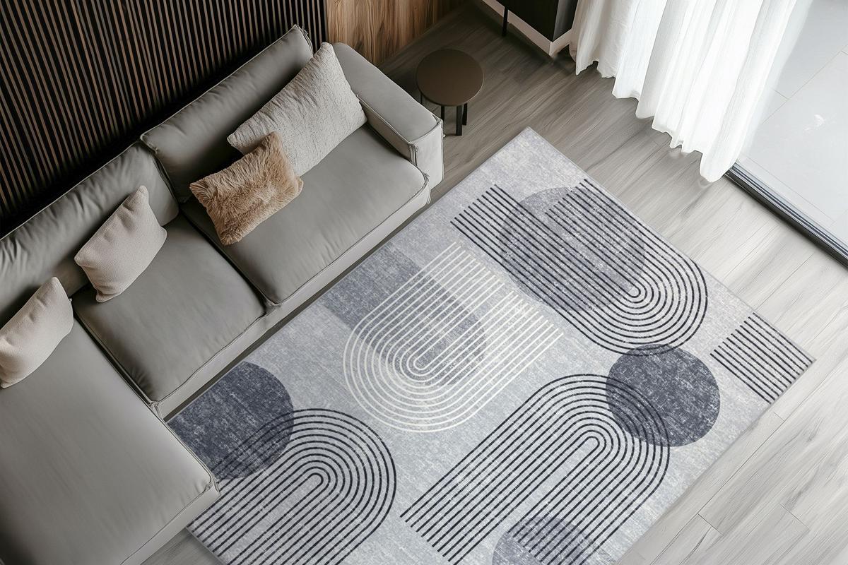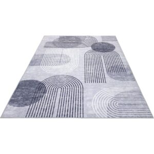 Dywan Avantgarde 101 szary to nowoczesna propozycja dla osób, które cenią wyrazisty design i geometryczne formy w stonowanej, eleganckiej kolorystyce. Abstrakcyjny wzór oparty na rytmicznych liniach i zaokrąglonych kształtach przyciąga wzrok, a jednocześnie doskonale wpisuje się w nowoczesne oraz minimalistyczne wnętrza.