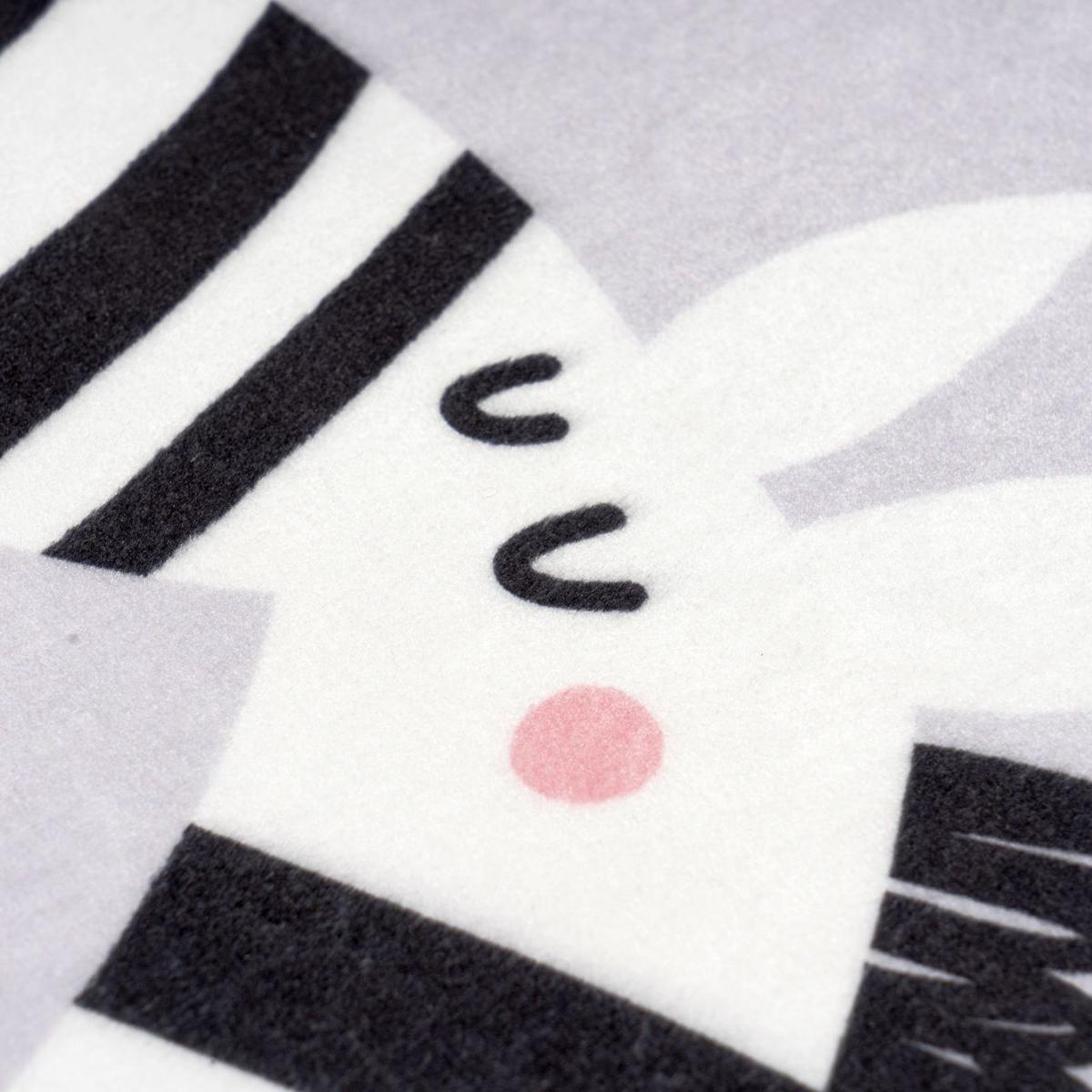 Prostokątny kształt oraz uniwersalny rozmiar sprawiają, że dywan doskonale sprawdzi się jako mata do zabawy, miejsce do odpoczynku lub element dekoracyjny w pokoju dziecka. Może być wykorzystywany zarówno w ciągu dnia, jak i jako część wieczornego rytuału wyciszenia.
