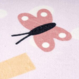 Ten wzór doskonale sprawdzi się w pokoju niemowlęcym oraz dziecięcym, gdzie liczy się delikatna estetyka i pozytywne skojarzenia. Ilustracje są miękkie w formie, a kolory subtelne, dzięki czemu dywan nie przytłacza wnętrza i harmonijnie wpisuje się w dziecięcą aranżację. Duża powierzchnia zapewnia komfortowe miejsce do raczkowania, siedzenia na podłodze czy kreatywnej zabawy.