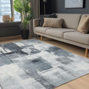 Wzór widoczny na powierzchni dywanu to połączenie nieregularnych bloków i przecierek, inspirowanych nowoczesnym malarstwem abstrakcyjnym. Różne odcienie szarości – od jasnych, srebrzystych tonów po głębsze, nasycone partie – tworzą efekt surowości i jednocześnie elegancji. Dzięki temu dywan może stać się centralnym punktem aranżacji albo uzupełnieniem minimalistycznego wystroju.